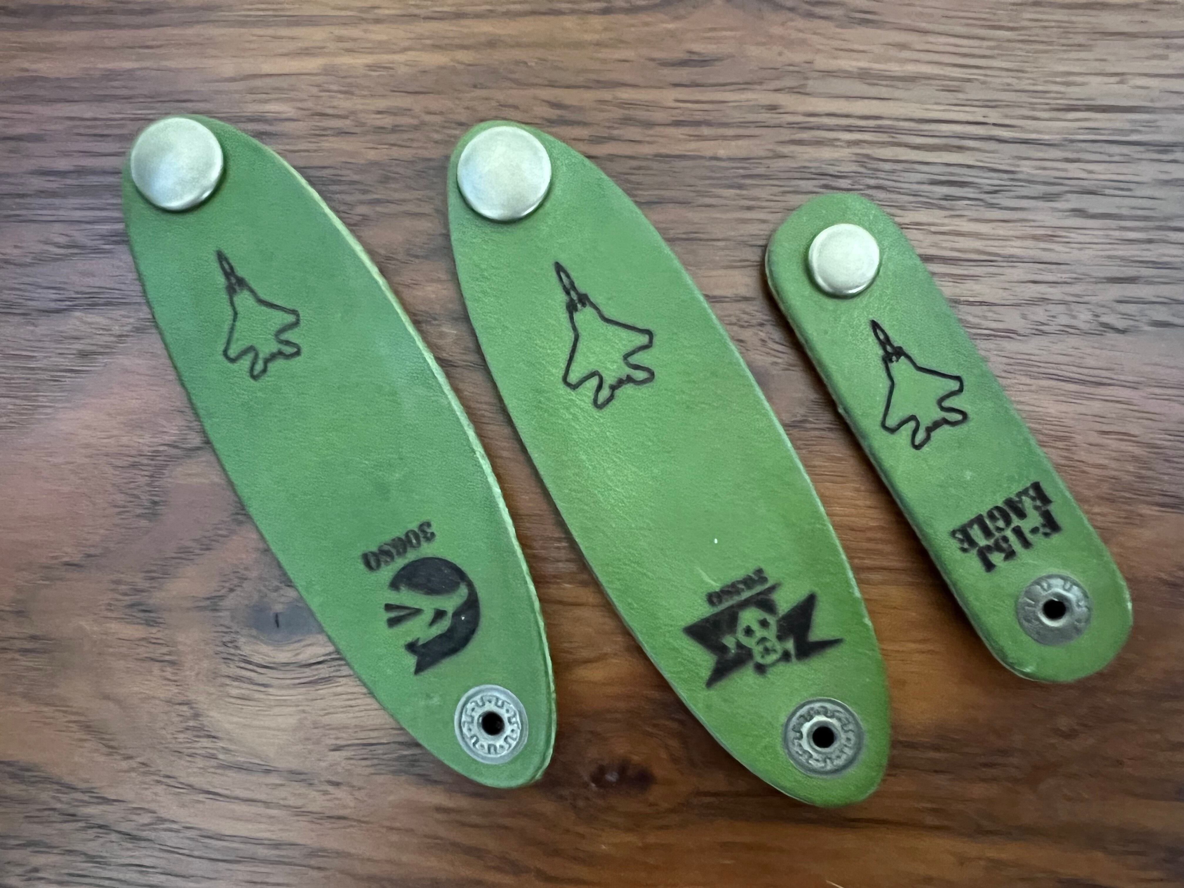 新商品 【F-15シルエット】革製ケーブル結束バンド(緑色セット)